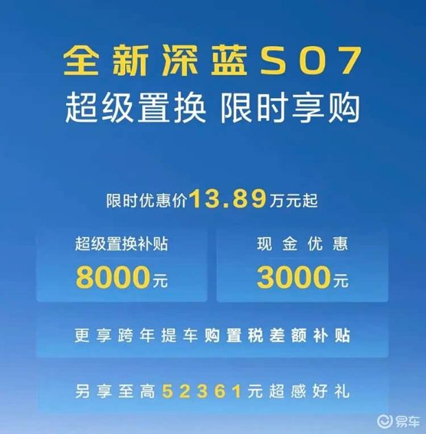 • 深蓝S07超级置换补贴上线!13.89万起享华为乾崑智驾