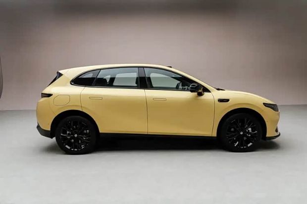 侧面来看,新车车顶醒目的激光雷达,将配备智能驾驶辅助系统,配备6处辅助驾驶小蓝灯。此外,车身侧面线条流畅舒展,无边框车门、隐藏式门把手与高亮黑玻璃B柱相得益彰,19英寸掠翼运动轮辋搭配电掣黄、风驰灰等六种个性配色(含两款专属车色),宽高比达1.237的低趴造型丝毫不逊色于豪华竞品。车身尺寸方面,新车长宽高分别为4430*1880*1520mm,轴距为2735mm。