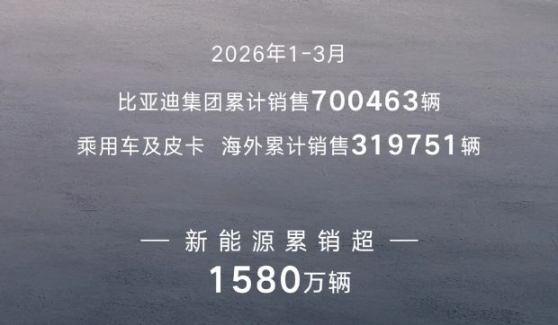 4月1日,比亚迪正式发布2026年3月及一季度销量数据。3月集团共销售汽车300222辆,重夺中国汽车厂商销量冠军。其中,乘用车295693辆,较2025年3月的377420辆同比下滑20.45%,较2026年2月的190190辆环比大涨57.9%;乘用车及皮卡海外销量达119591辆,同比劲…